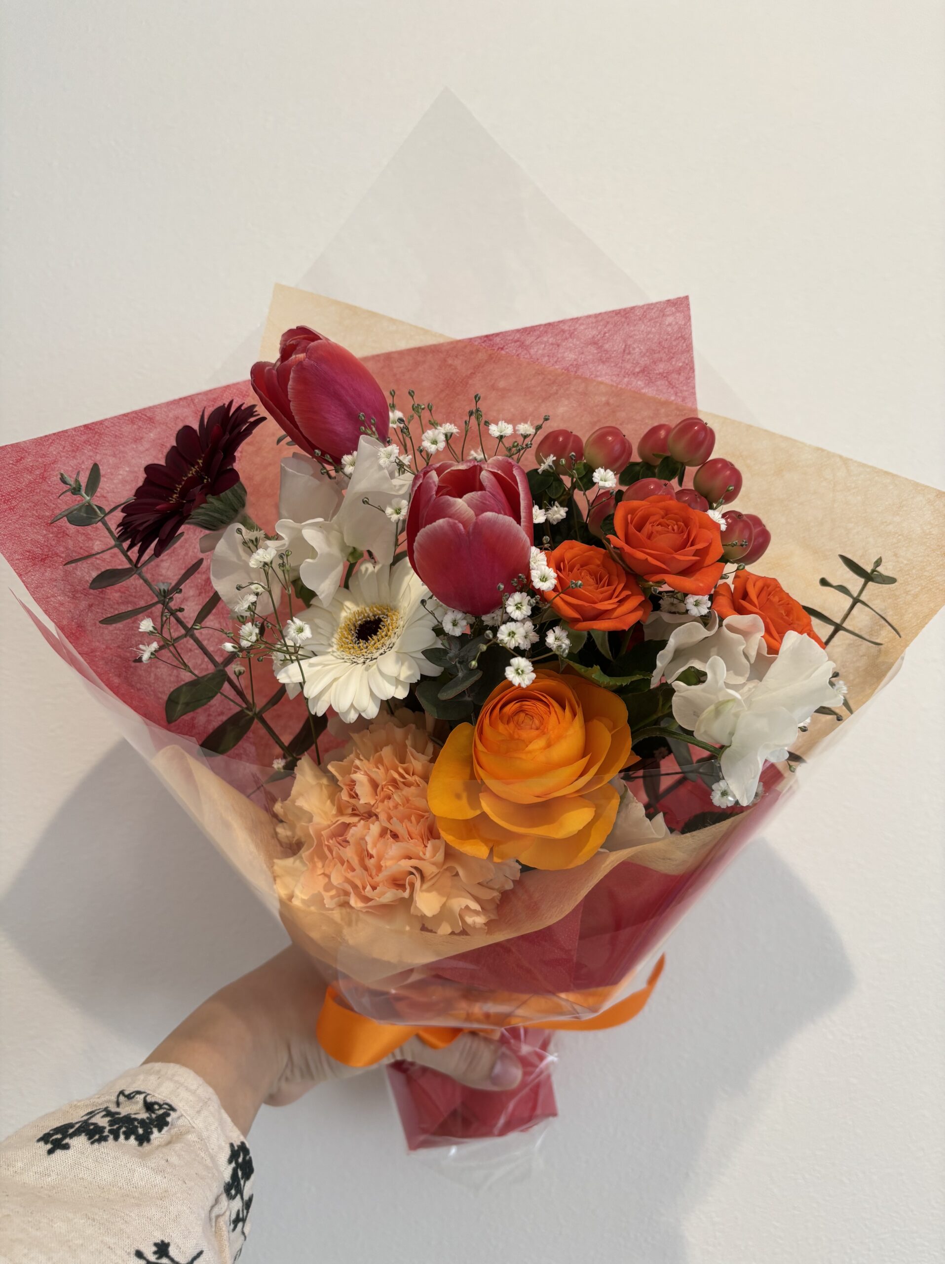 朝から夫が頼んでくれていた花束を受け取りに百貨店の花屋さんに行き、